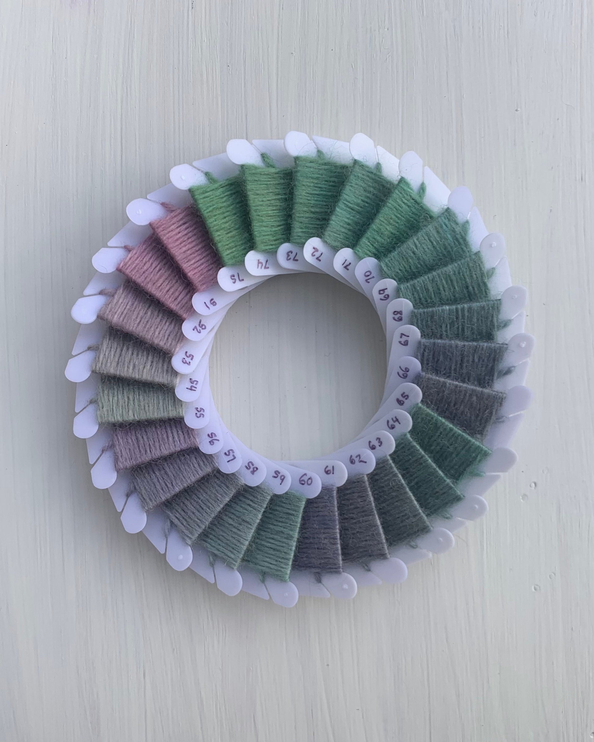 The colours according to the recipes were mixed, recorded and then tested on 1g of natural white wool yarn. Screen colour photo to actual yarn sample varies. I recommend dyeing small samples of each colour and attaching them to the printed file, storing you're recipes in a binder, away from sunlight.